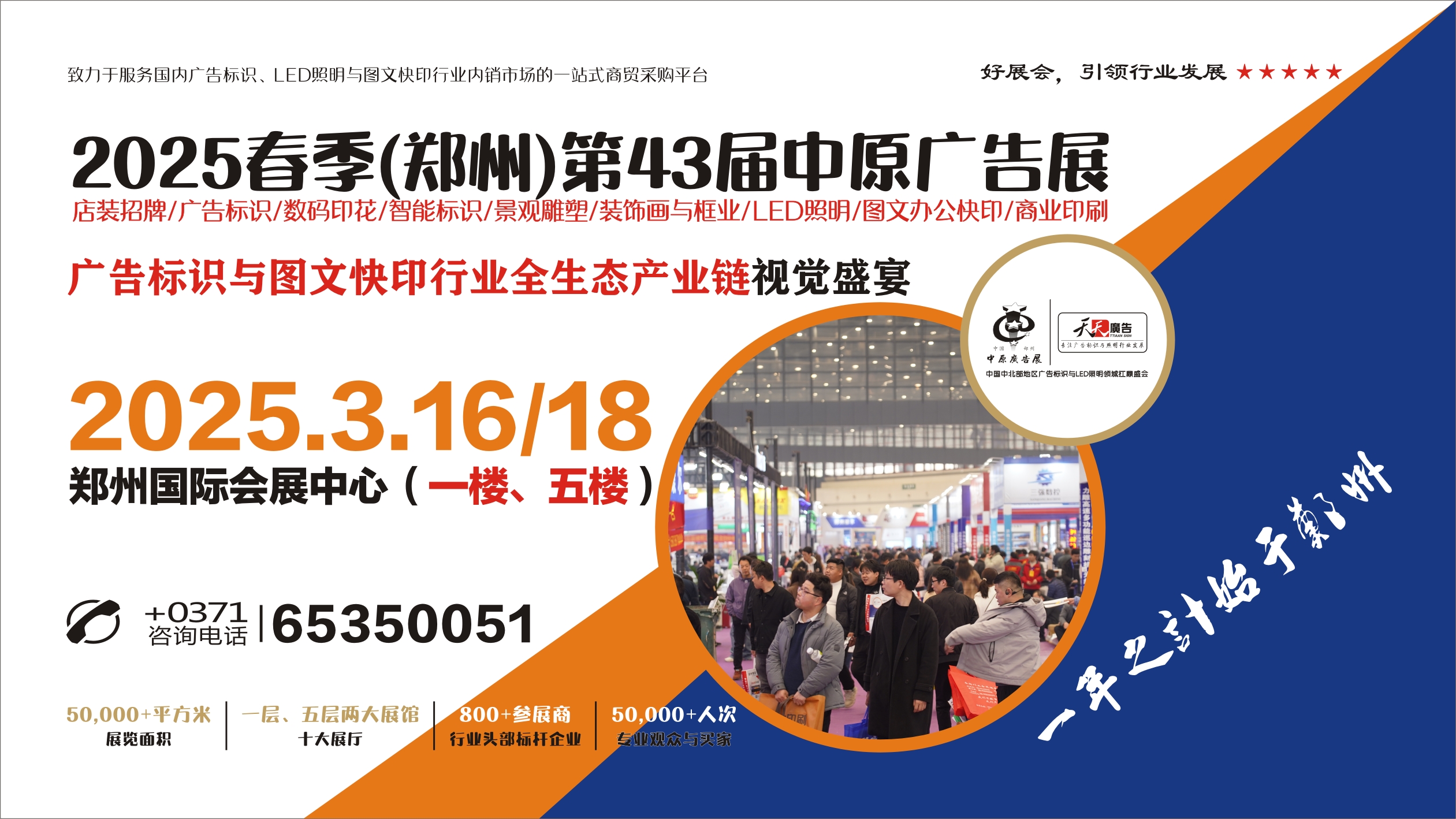 盛況再啟,精彩不斷續(xù)新篇!3月16日,鄭州國際會展中心,讓我們相聚2025春季(鄭州)第43屆中原廣告展暨2025中部(鄭州)裝飾畫與畫框及軟裝裝飾展,攜手并進(jìn) 共贏未來,一起再譜廣告新篇章!
