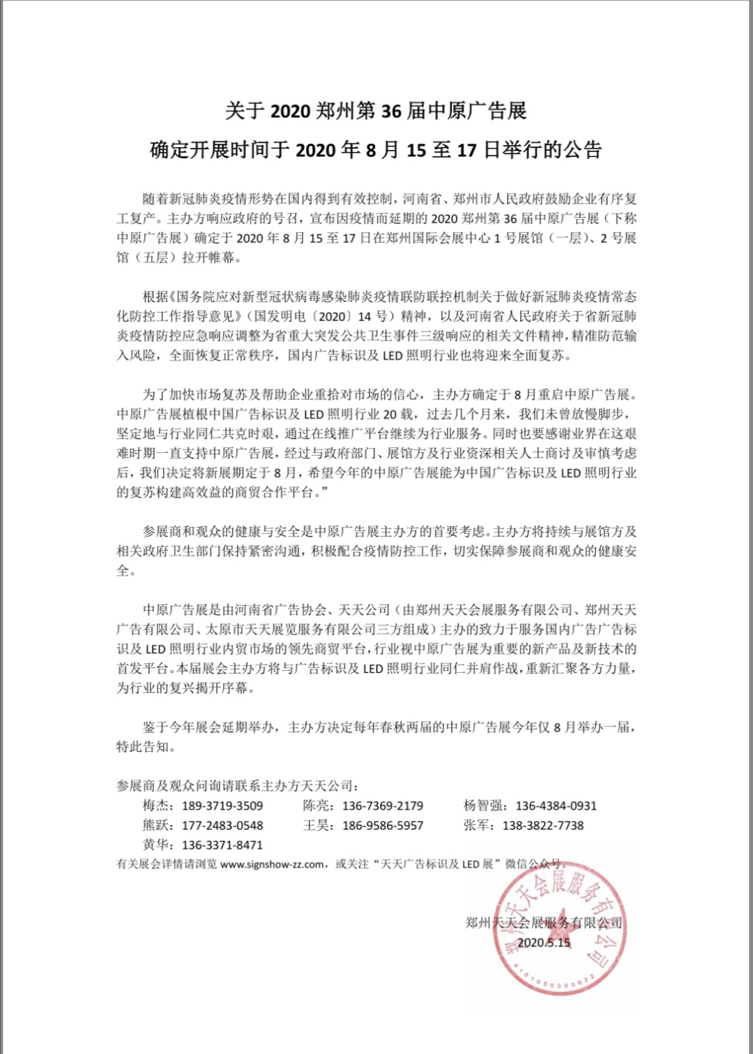 關(guān)于2020鄭州第36屆中原廣告展開(kāi)展時(shí)間確定的通知